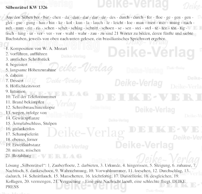 Eine gute Nachricht läuft, eine schlechte fliegt - Silbenrätsel KW 1326