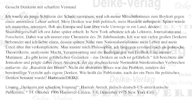 Hannah Arendt - Personenrätsel KW 4925