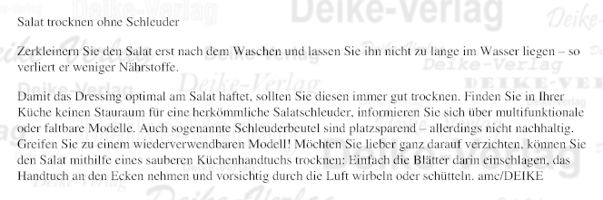 Salat trockenen ohne Schleuder